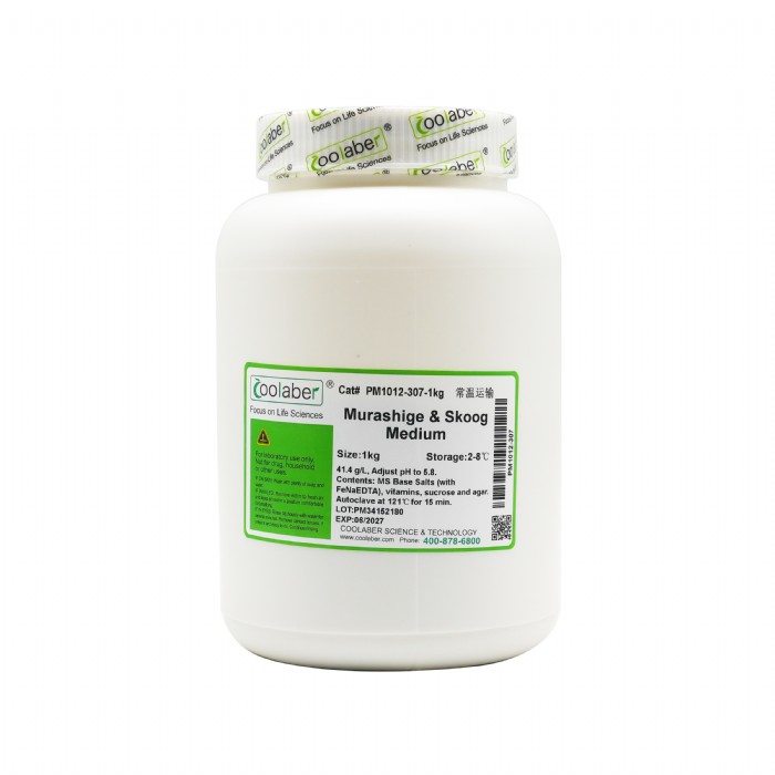Coolaber®出品的MS系列培养基含有大量元素、微量元素、维生素(可选),含蔗糖和琼脂,(再补加蔗糖(CS10581)20-30g/L,准备固体培养基时还需要加入琼脂粉(CA1331)7-12g/L,或者植物凝胶(CP8581)2-4g/L。)溶液调pH值至5.8,过滤除菌或高温灭菌后备用。如培养基需高温灭菌,植物生长调节剂需先溶解成高倍母液过滤除菌,并在培养基温度将至65℃左右时加入。固体培养基必须高温灭菌,高温过程琼脂粉和植物凝胶才会溶解,降温后成胶。