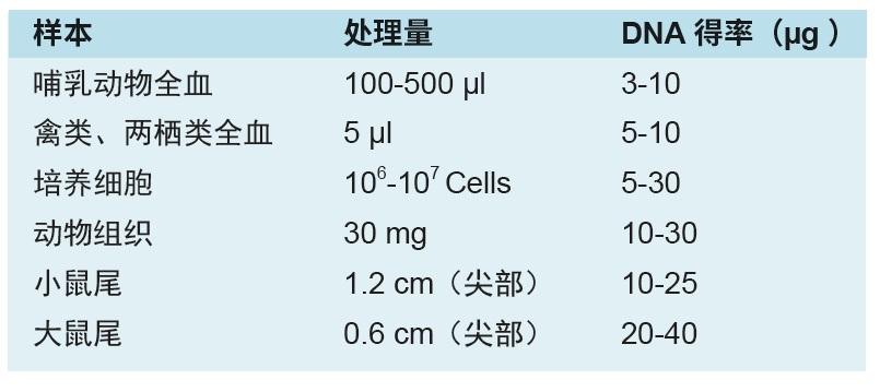 ■ 应尽量使用新鲜的样本材料,确保纯化得到的基因组DNA 的完整性。
